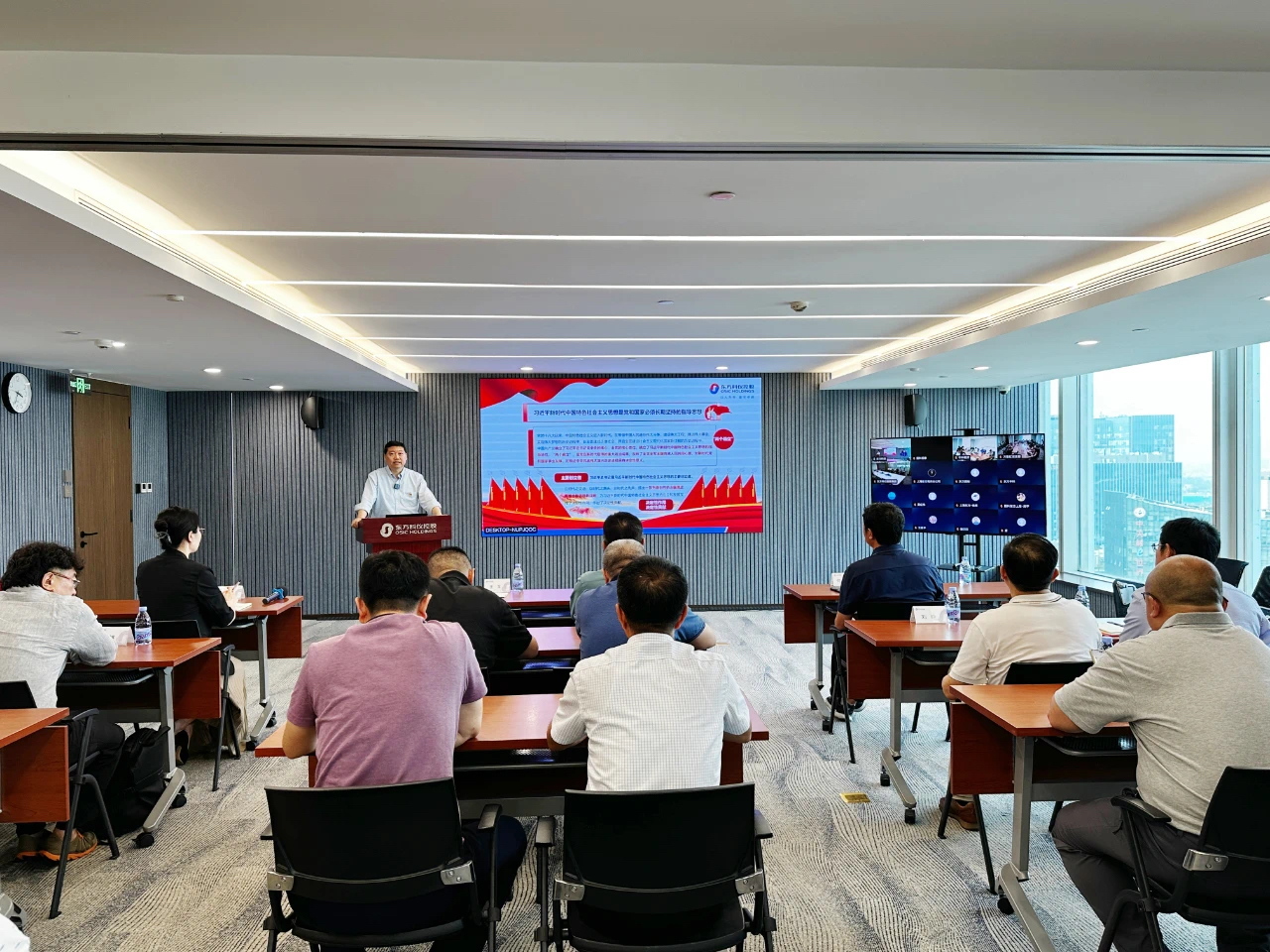 ??6月30日,東方科儀控股集團(tuán)有限公司(以下簡(jiǎn)稱東方科儀控股)開展黨委書記講專題黨課暨慶祝中國(guó)共產(chǎn)黨成立104周年“七一”黨群團(tuán)聯(lián)合表彰,會(huì)議采取主會(huì)場(chǎng)現(xiàn)場(chǎng)參會(huì)和分會(huì)場(chǎng)視頻參會(huì)相結(jié)合的方式,集團(tuán)公司和京內(nèi)外成員企業(yè)黨員、團(tuán)員及工會(huì)會(huì)員代表等200余人參加了會(huì)議。