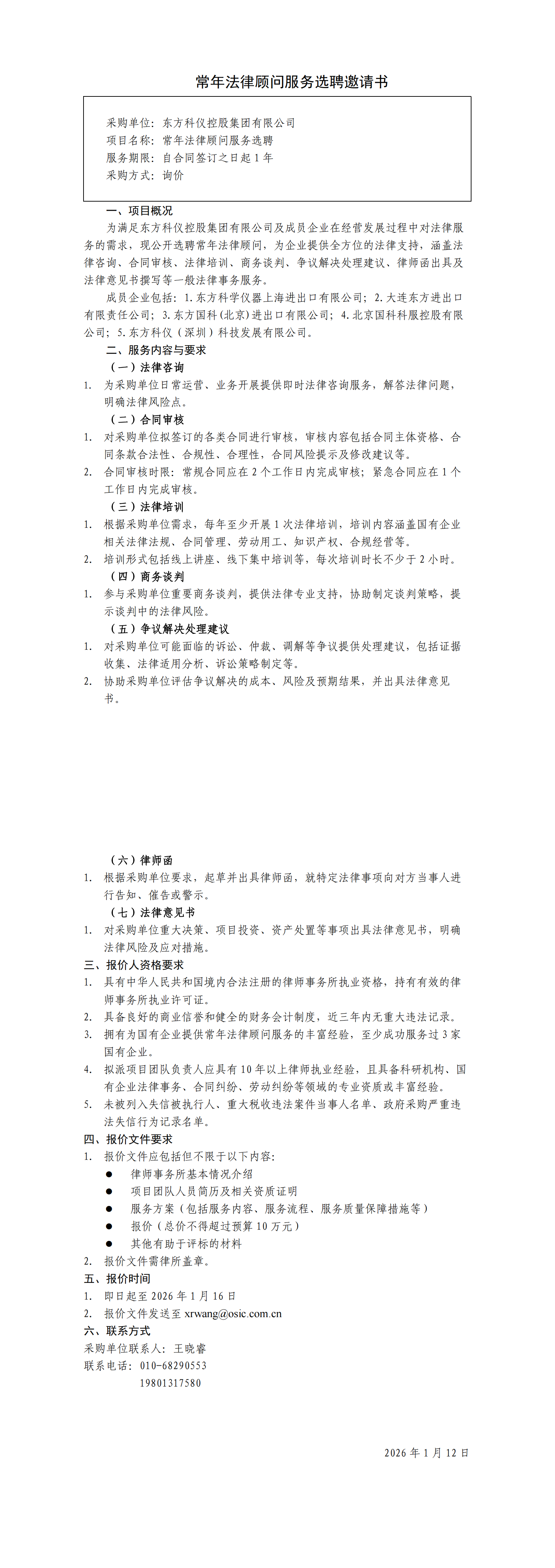 常年法律顧問服務選聘邀請書